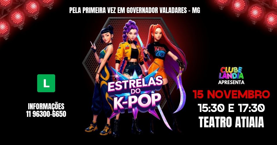 Pela primeira vez em Governador Valadares/MG, o aclamado fenômeno da TV ganha vida no palco do Teatro Atiaia! Prepare-se para uma aventura épica que mistura música, dança e magia com a adaptação teatral de "Guerreiras do K-Pop".